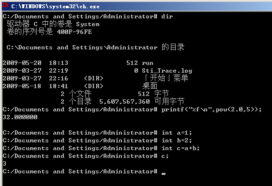 利用Ch,C/C++程序无需编译就可以直接在多平台上运行。它实现了一种语言、到处运行的解决方案(One Language for All™),下面是从命令行运行CH时的截图。